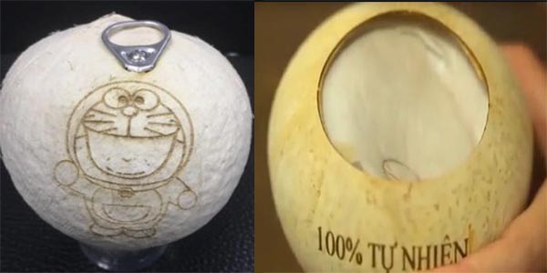 激光加工易拉罐椰子,是通過激光雕刻機(jī)在椰子表面劃線、切割出椰子的大蓋小蓋,金屬易拉環(huán)被裝入到激光雕刻機(jī)切出的孔洞里,一個(gè)易拉罐椰子就成型了。而且在椰子表面可以用激光雕刻任意圖案、文字,提升美感。