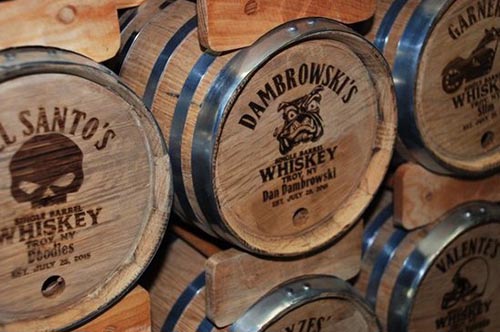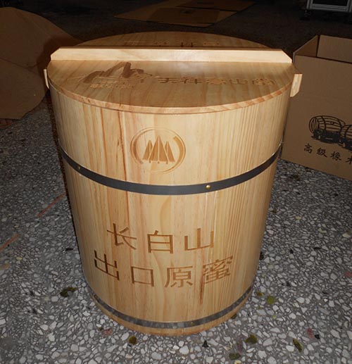 釀酒過程中,木桶比較多,為了方便酒品信息識別,都會在木桶上做標記。傳統(tǒng)的噴印容易磨損,激光雕刻是不易磨滅的,并且可以在桶面上雕刻任意圖案文字。