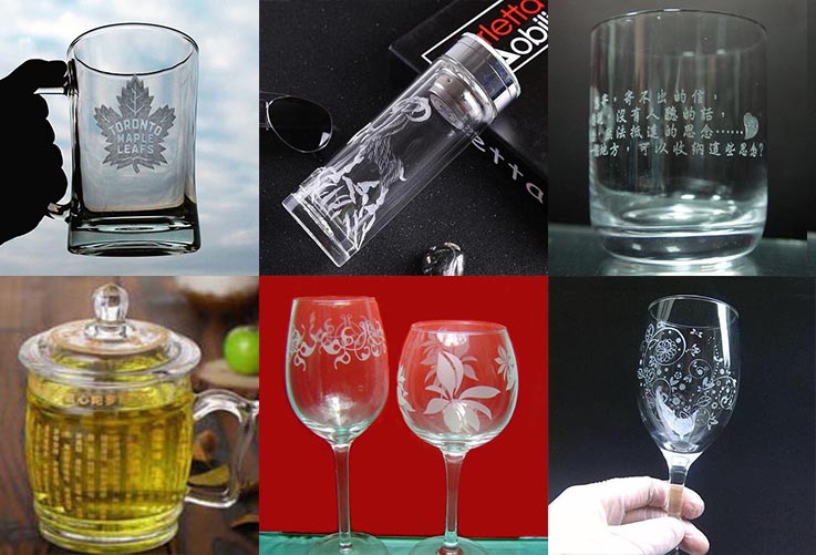 玻璃水杯、玻璃茶杯、高腳杯、雙層玻璃杯激光雕刻樣品圖