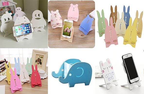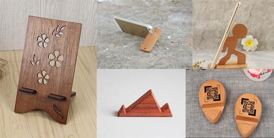 木制手機支架、亞克力手機支架、木塑板手機支架、塑料手機支架激光雕刻樣品圖