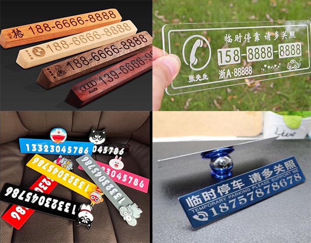 木制、亞克力、金屬等材質(zhì)停車(chē)牌、挪車(chē)牌激光雕刻樣品圖