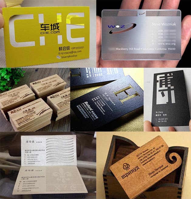 紙質(zhì)名片、木制名片、不銹鋼名片激光雕刻樣品圖