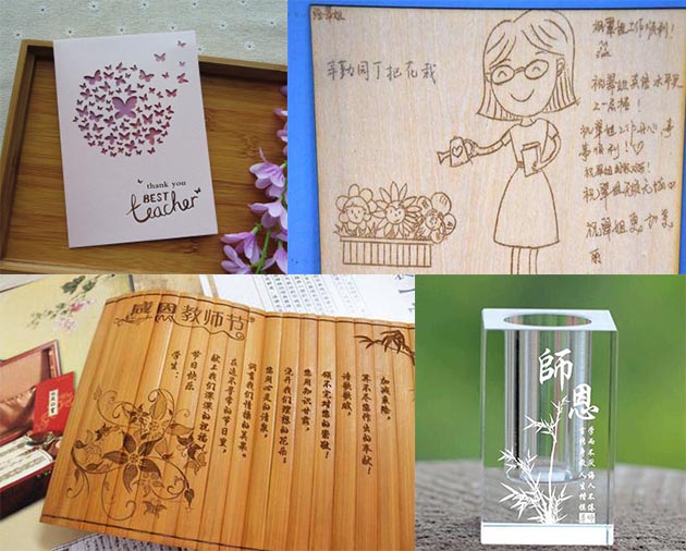 紙質、竹木制、水晶等教師禮物激光雕刻樣品圖