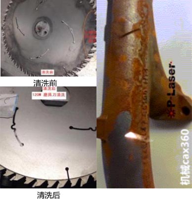 將直徑200mm的鋸片表面銹跡清洗干凈。此工藝可以應(yīng)用于工廠許多設(shè)備零部件上有各種臟污殘留以及銹跡等,傳統(tǒng)清洗方法對(duì)于環(huán)境的污染較為嚴(yán)重,而用激光清洗將更為環(huán)保清潔。