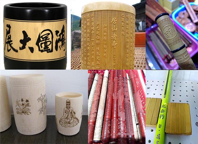 筆筒、水杯、魚竿等圓柱體激光雕刻樣品圖